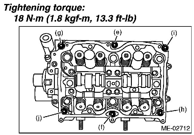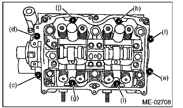 2) Equally loosen the bolts (c) through (j) all the way in alphabetical sequence.