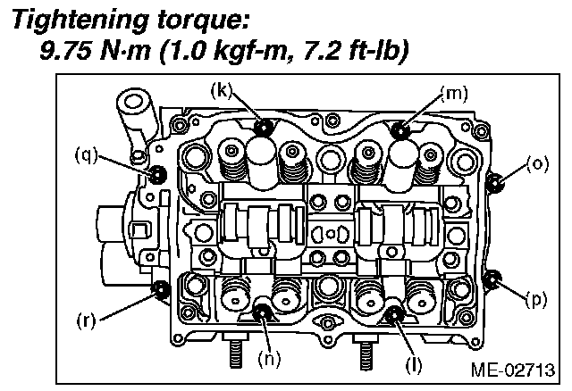 5) Tighten the bolts (k) through (r) in alphabetical sequence.