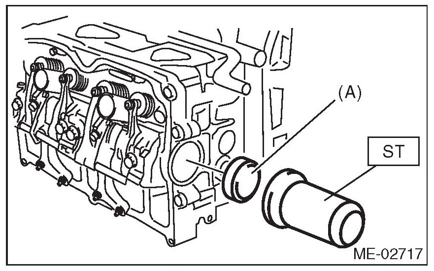 4) Apply a coat of engine oil to plug periphery and install the plug (A) using ST.