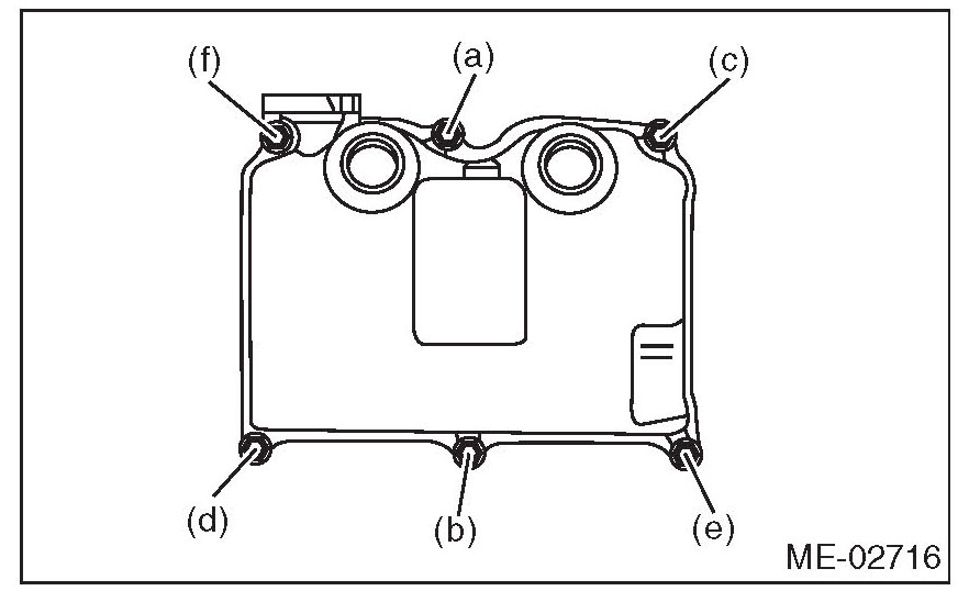 2) Temporarily tighten the bolts (a) through (d) in alphabetical sequence.