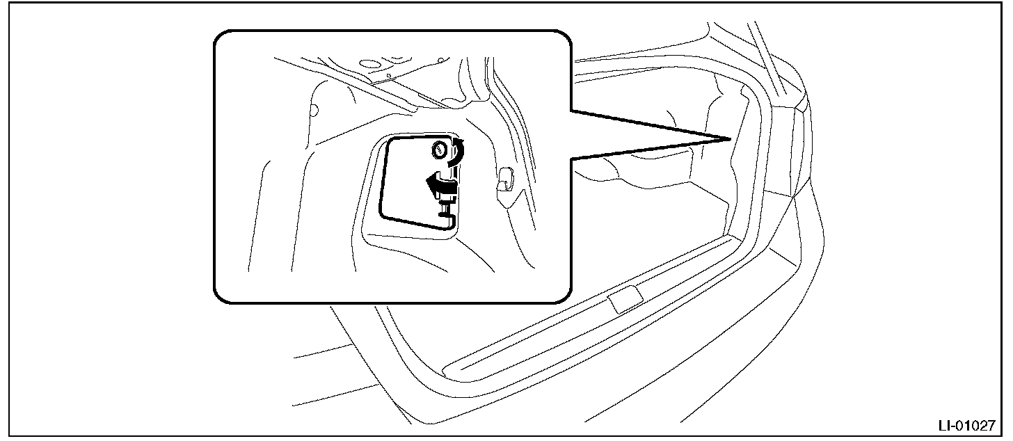 2. Release the lock and remove the bulb inspection cover of trunk room trim.