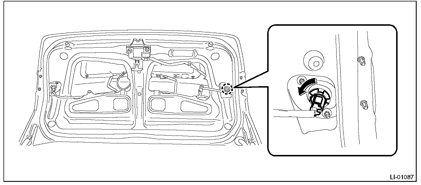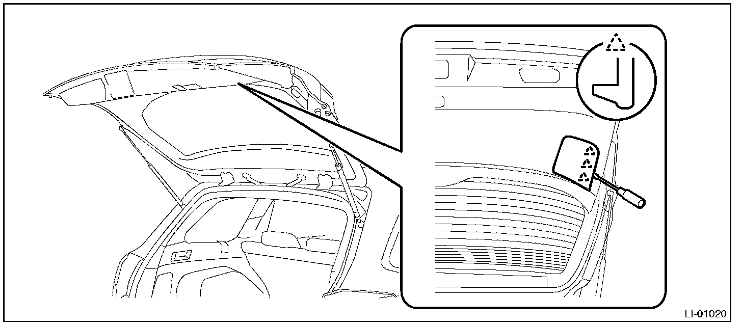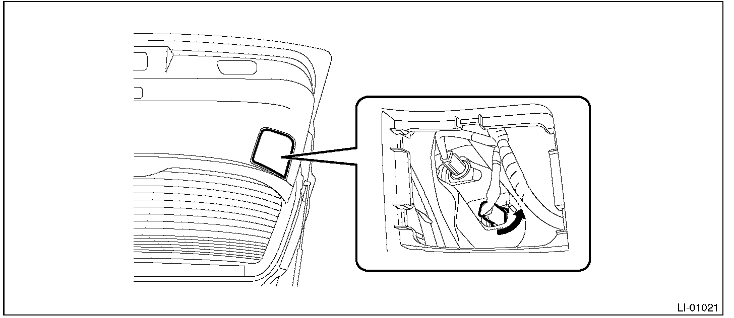 1. Release the claws and remove the bulb inspection cover of rear gate trim.