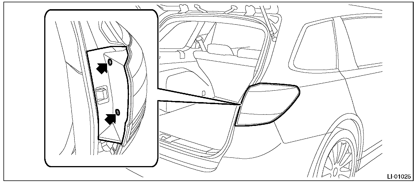 1. Release the bolts and clips, then pull out the rear combination light assembly to the vehicle rear.