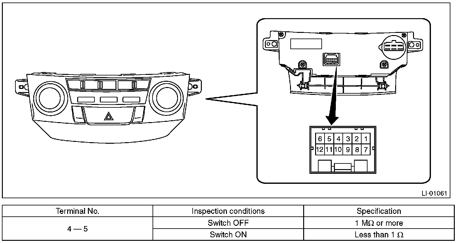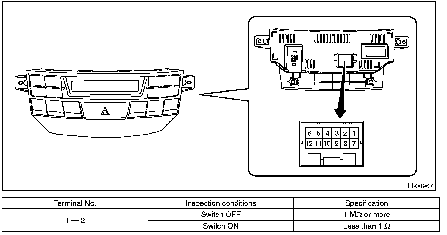 2. Measure the resistance between hazard switch terminals.