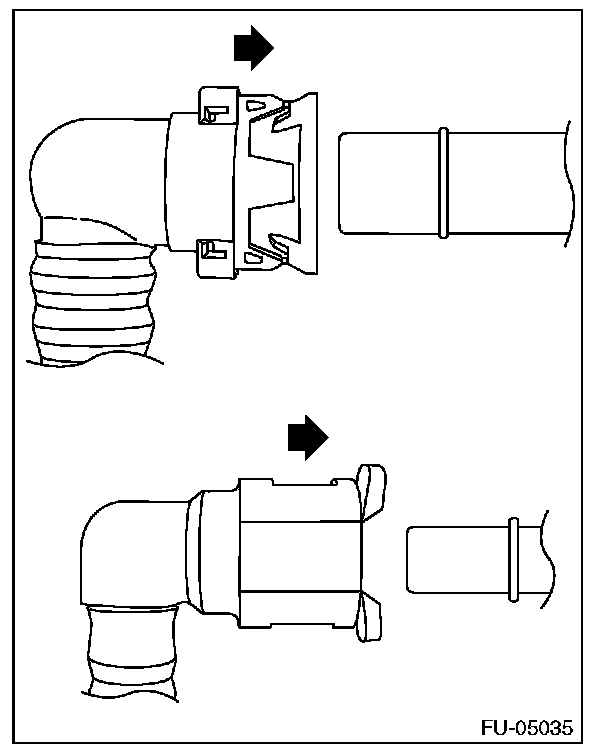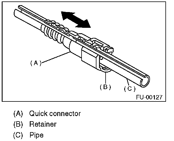 1. Push the retainer in the direction of the arrow, disconnect the quick connector from pipe.