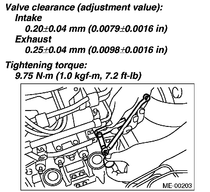 4) Ensure the valve clearances of each cylinder are within specifications. If necessary, readjust the valve clearances.