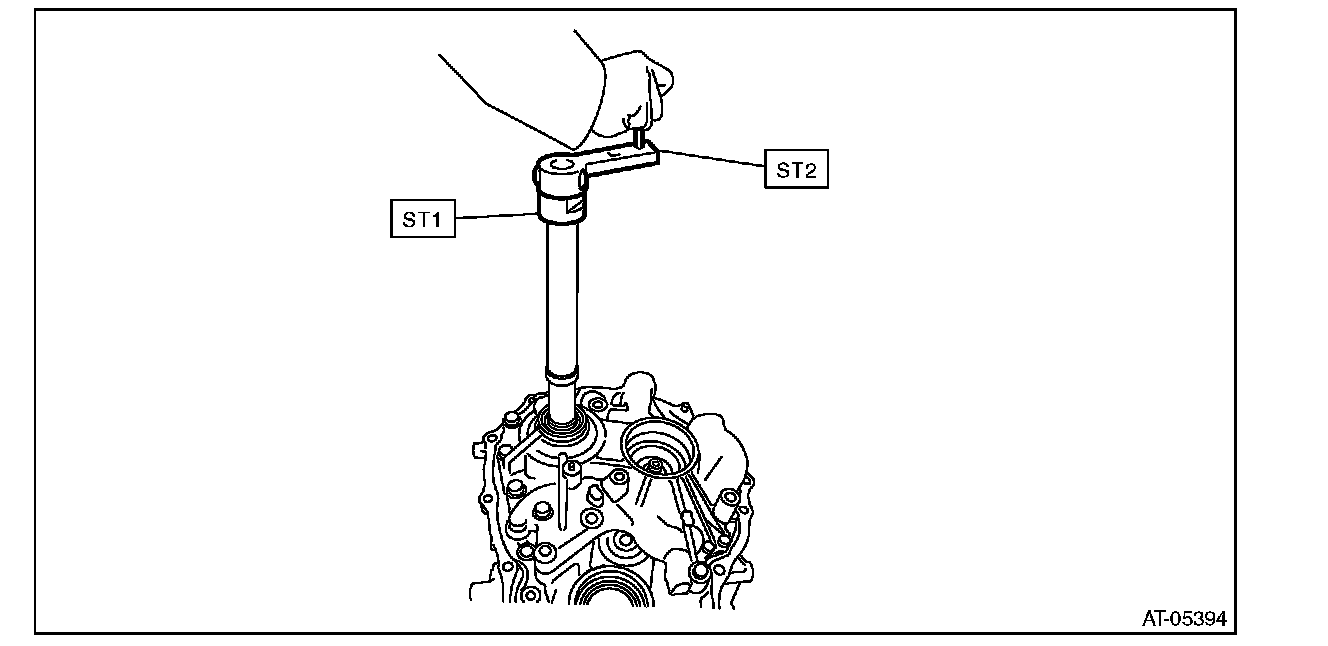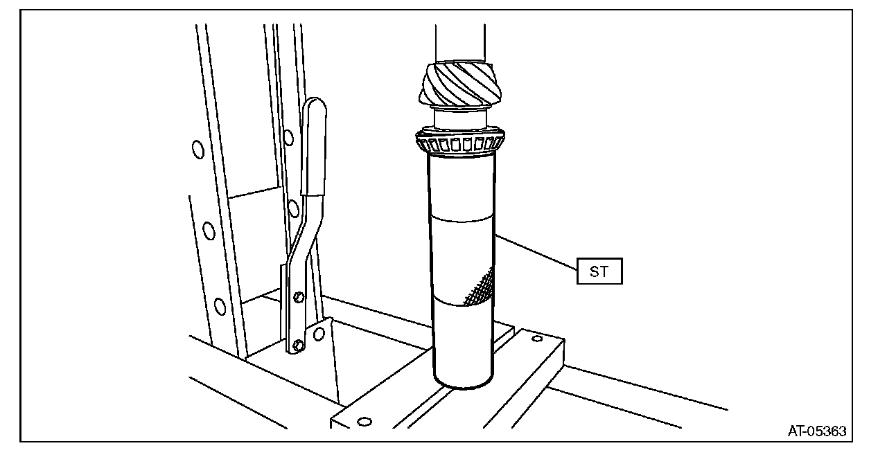 3) Rotate the drive pinion several times using ST1 and ST2.