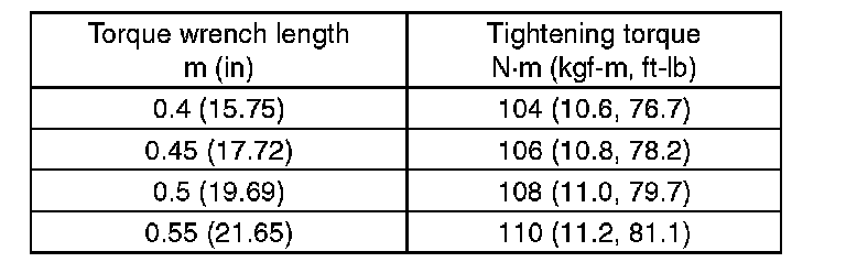 6) Tighten a new lock nut using the ST. Using the following formula, calculate the torque for a torque wrench.