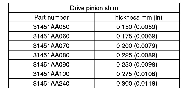 11) Obtain thickness "t" mm (in) of the drive pinion shim.
