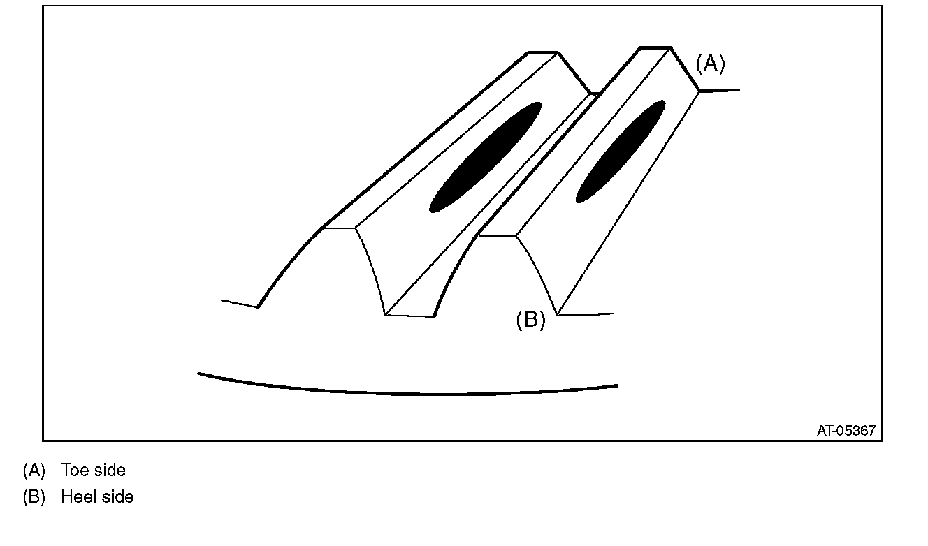 Check item: Tooth contact surface is slightly shifted toward the toe side under a no-load condition. (When driving, it moves towards the heel side.