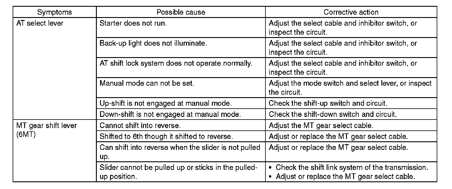 General Diagnostic Table: