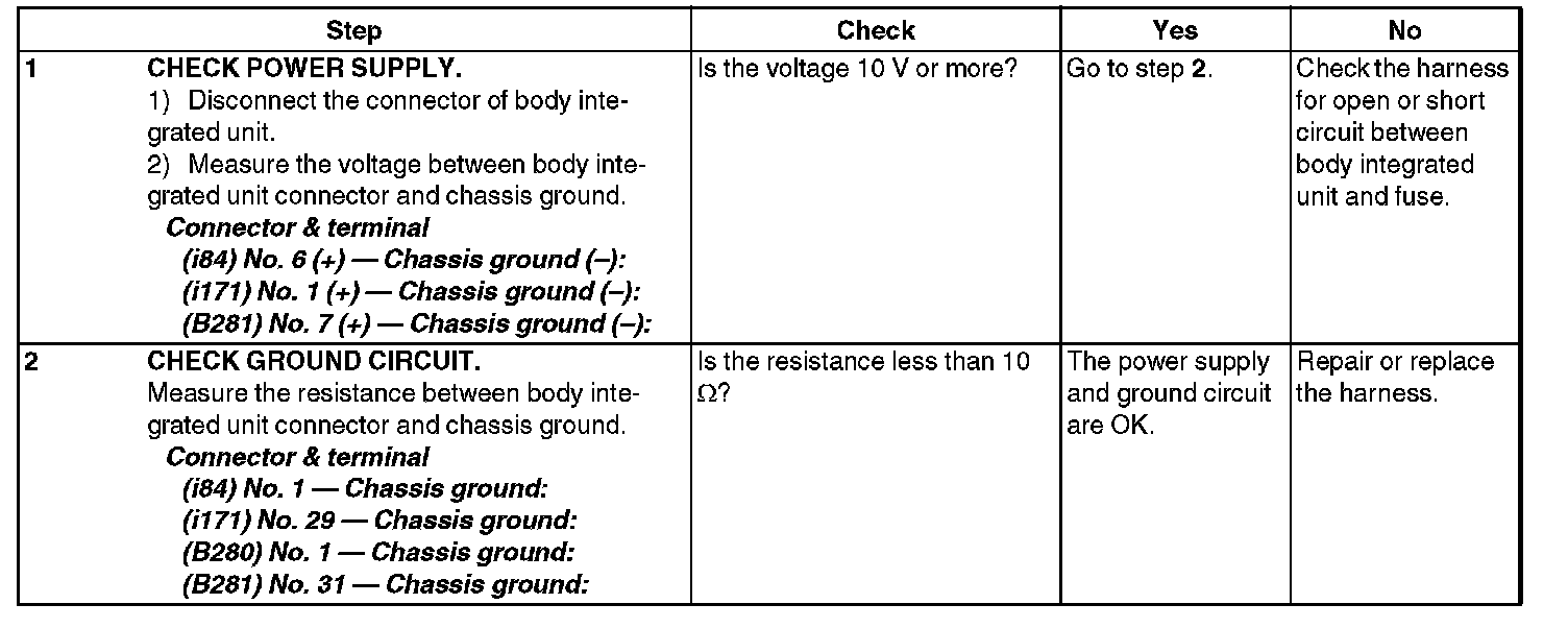 CHECK POWER SUPPLY AND GROUND CIRCUIT