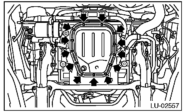 2) Tighten the oil pan lower installing bolts in the numerical order as shown in the figure.