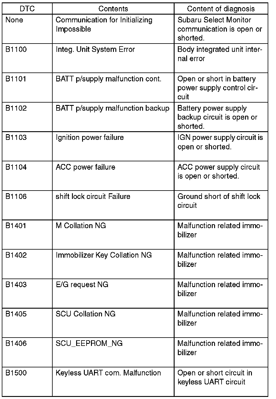 List of Diagnostic Trouble Code (DTC)