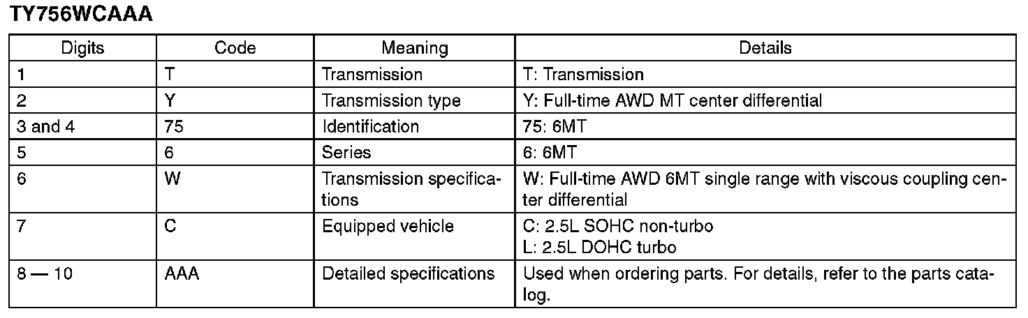 The model number plate indicates applied model, option code, trim code, engine type, transmission type and the exterior color code. This information is helpful when placing orders for parts.