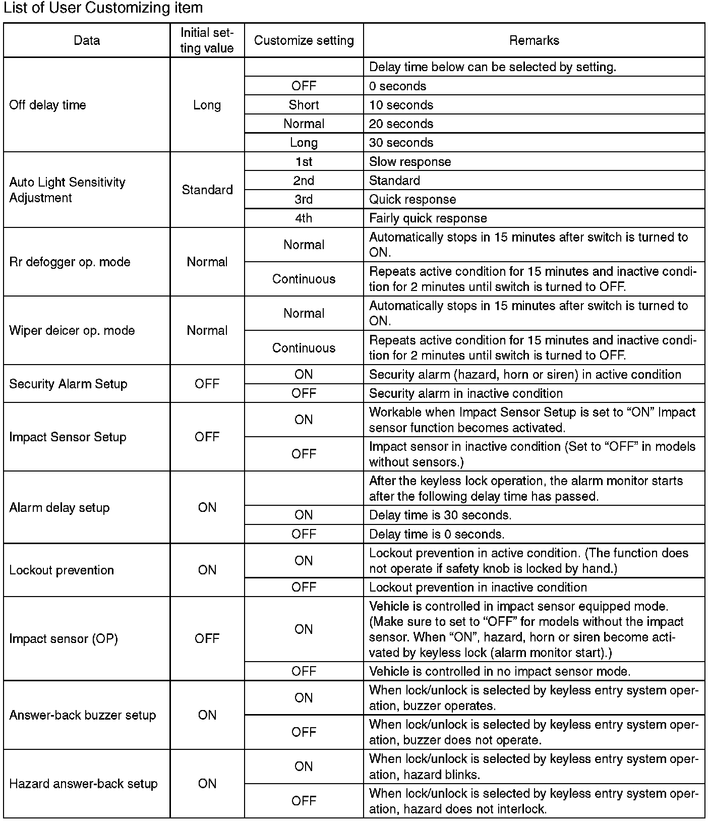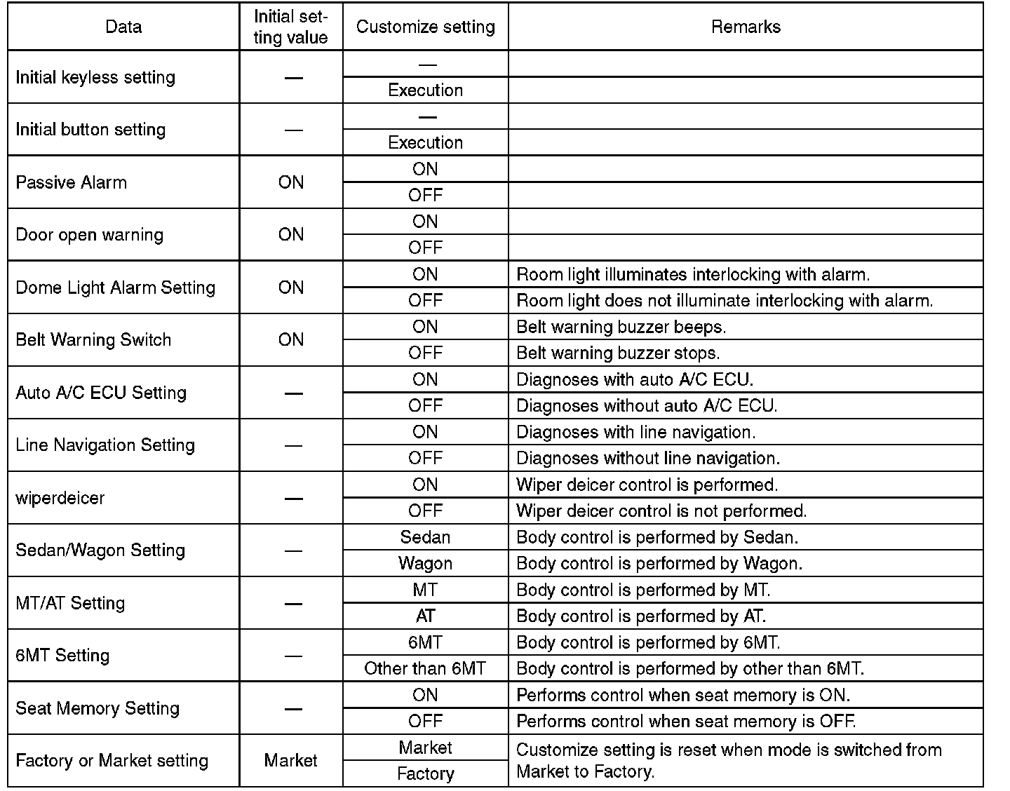 - Be sure not to change Factory or Market setting except when installing a new body integrated unit.