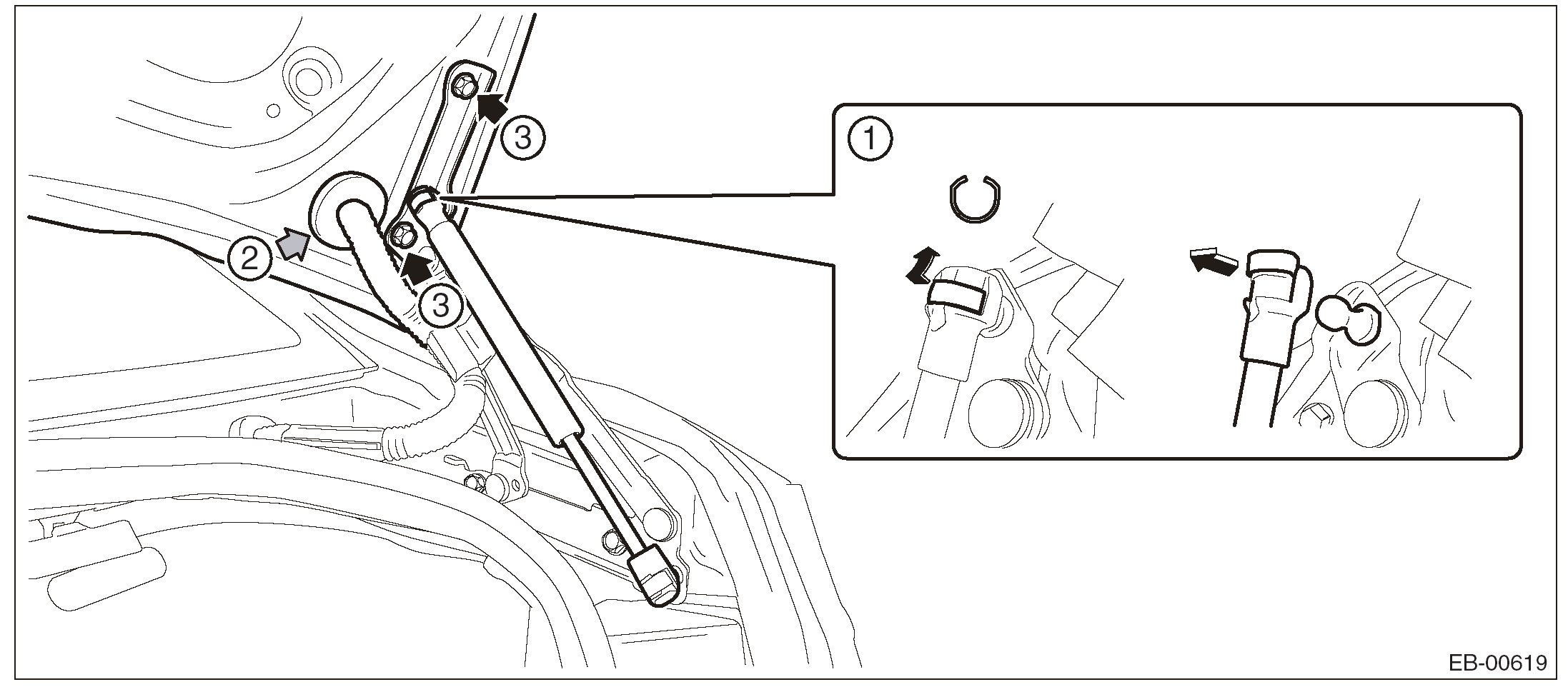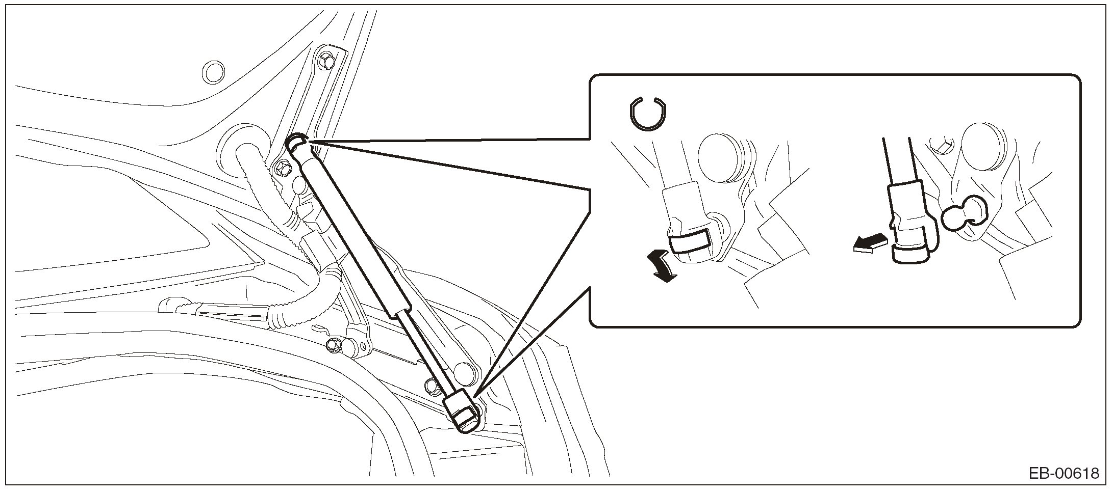 2. Remove the trunk lid damper stay by pulling the damper stay mounting point.