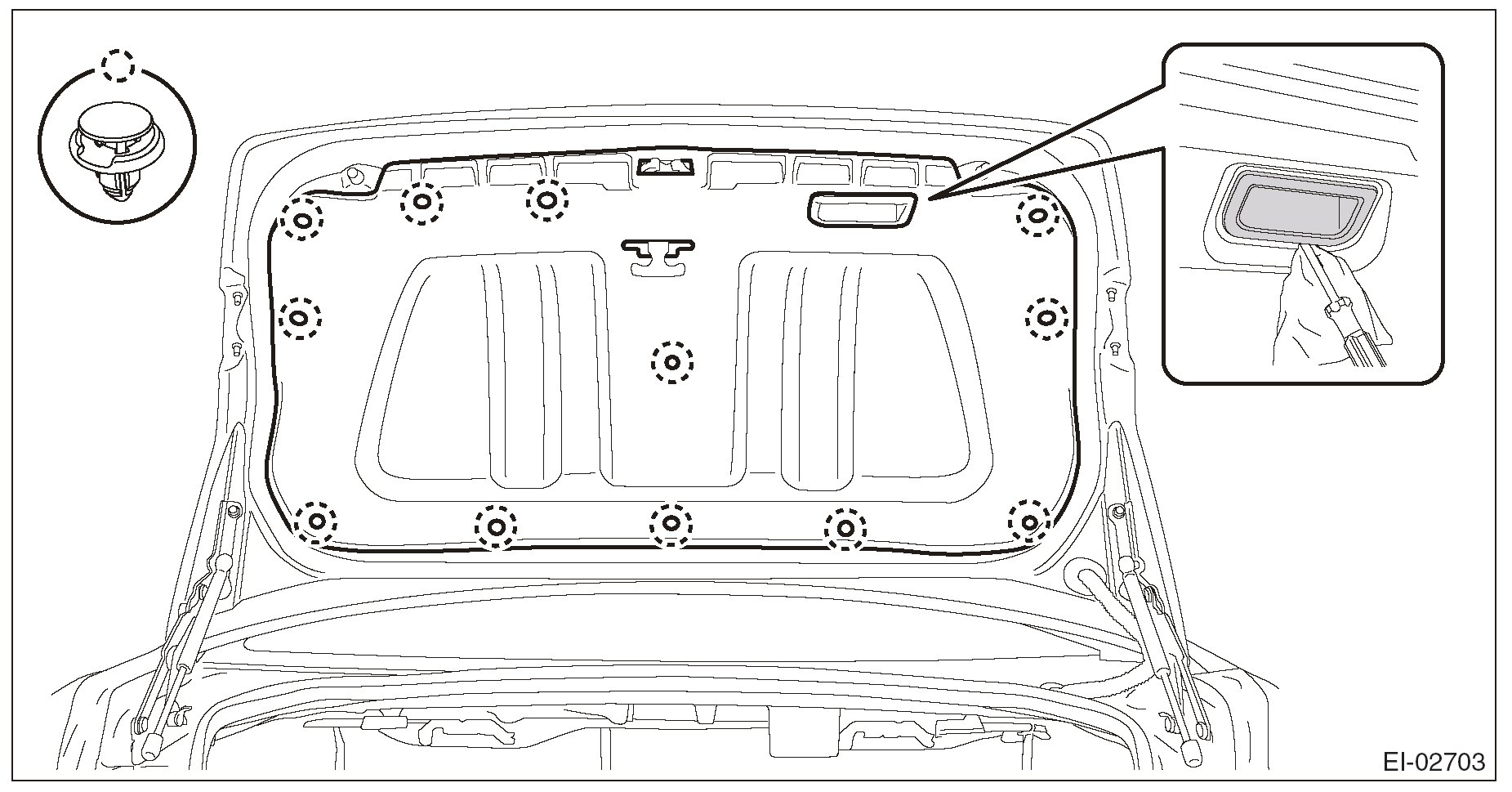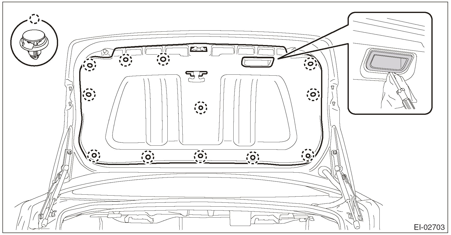 2. Remove the clips and the trunk lid trim.