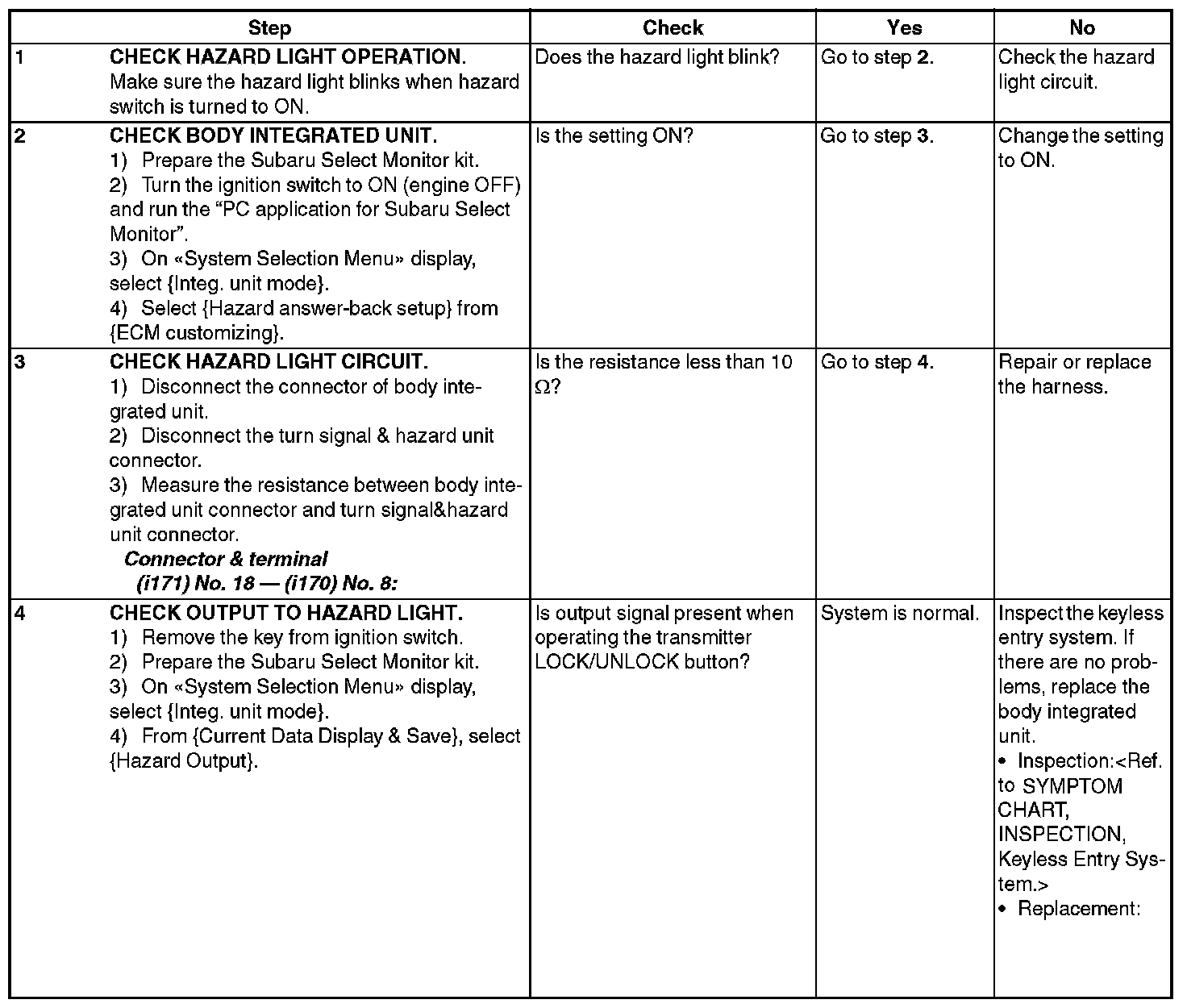 CHECK HAZARD LIGHT OPERATION