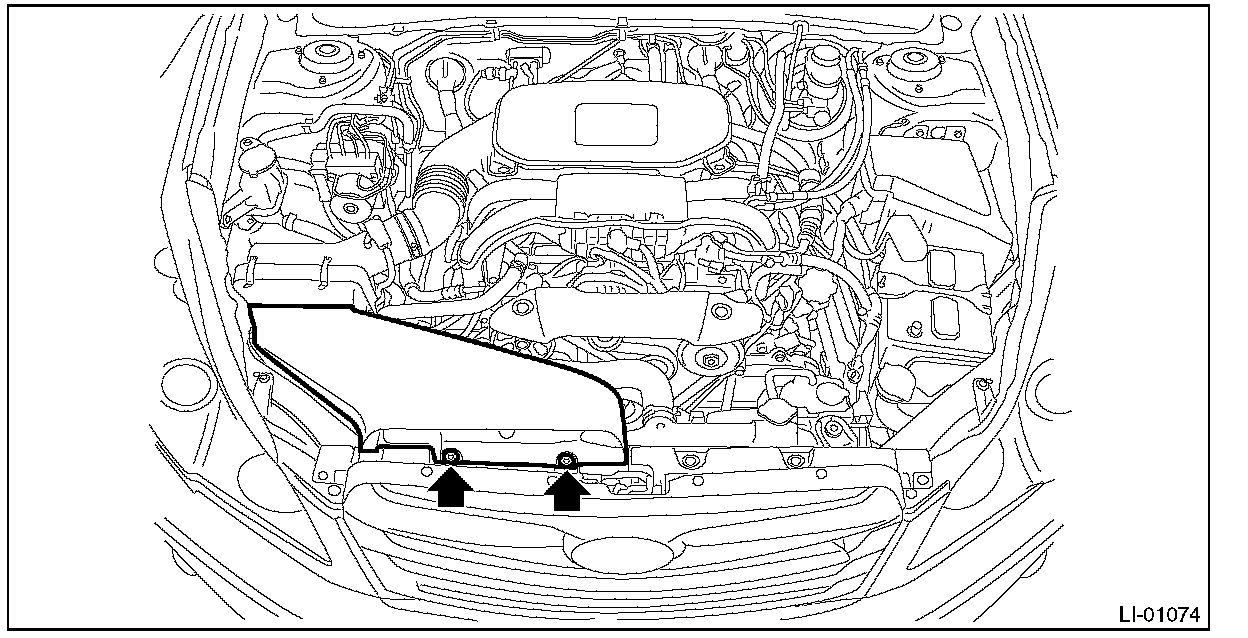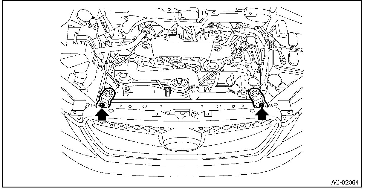 5. Remove the bolts and remove the radiator upper bracket.