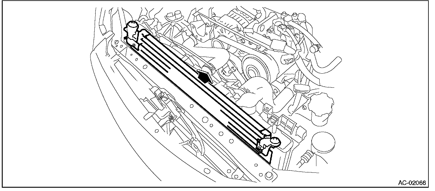 2. By lifting the condenser, pull it out through the space between the radiator and the radiator panel.