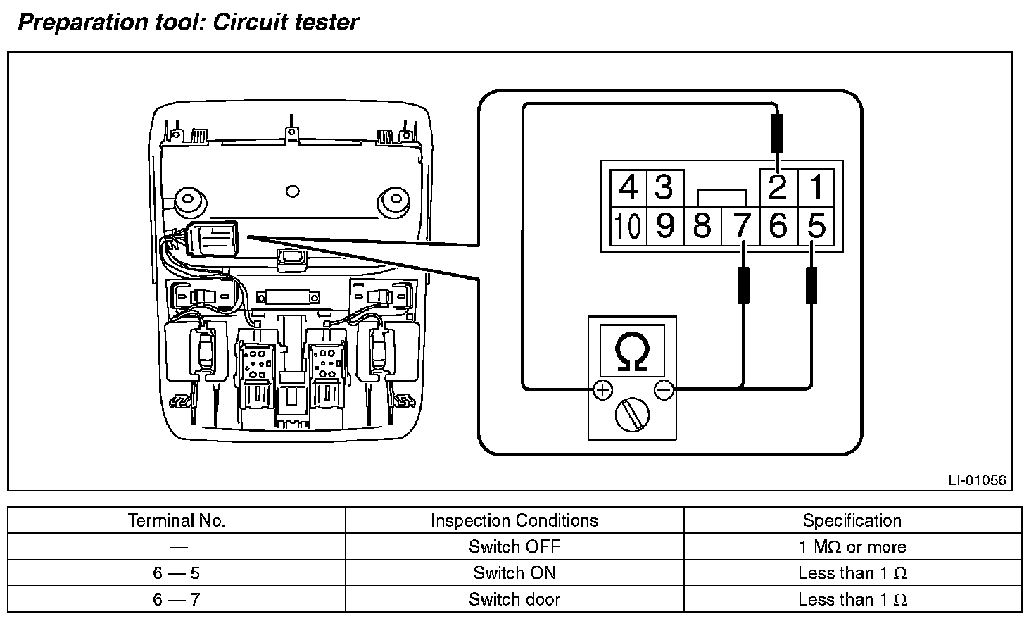 2. Measure the resistance between spot map light switch terminals.
