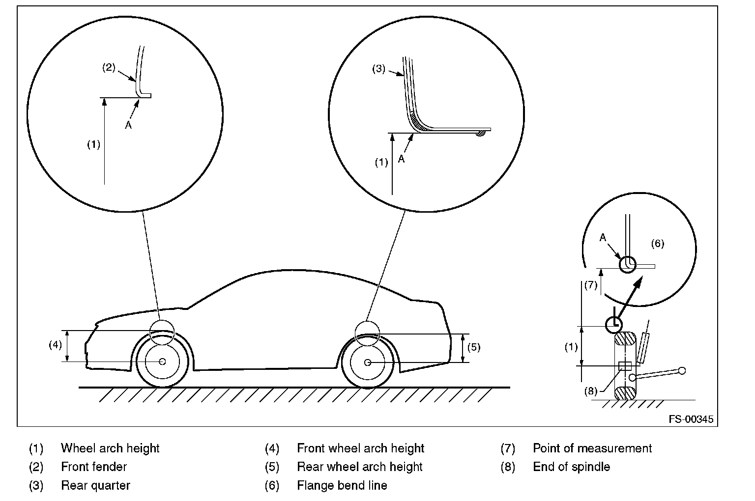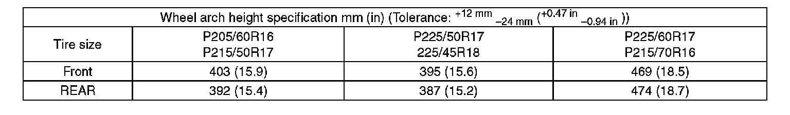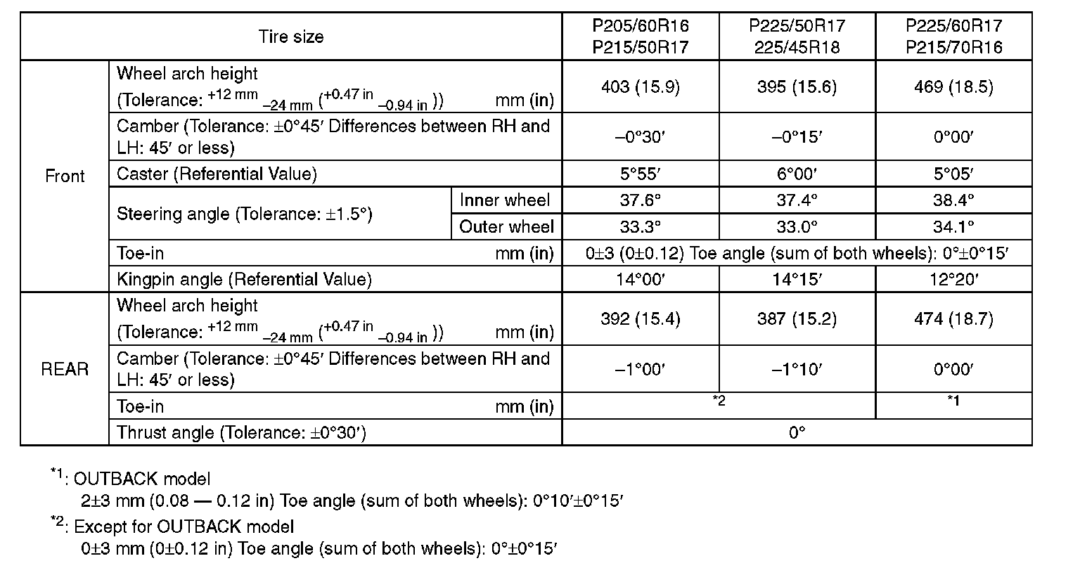 ^ For other items indicated in the specifications table, there is no adjustment mechanism. If other items exceed specifications, check the suspension parts and connections for deformation, and replace the parts if defective.
