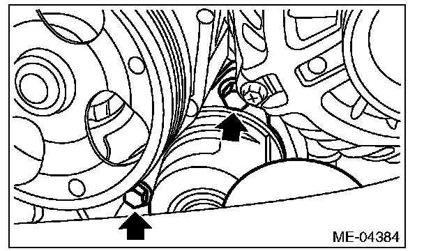 3) Remove the bolt securing the idler pulley to the A/C compressor bracket, and remove the idler pulley.