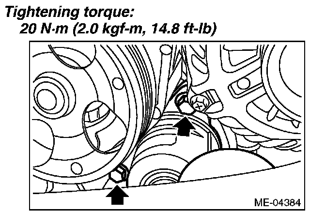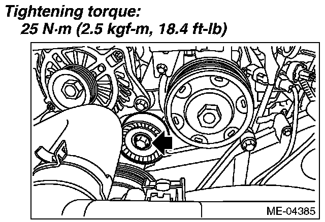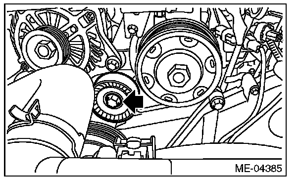 3) Check the V-belt tensioner assembly and idler pulley for deformation, cracks or other damages.