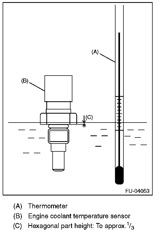 2. Immerse the engine coolant temperature sensor and a thermometer in water.