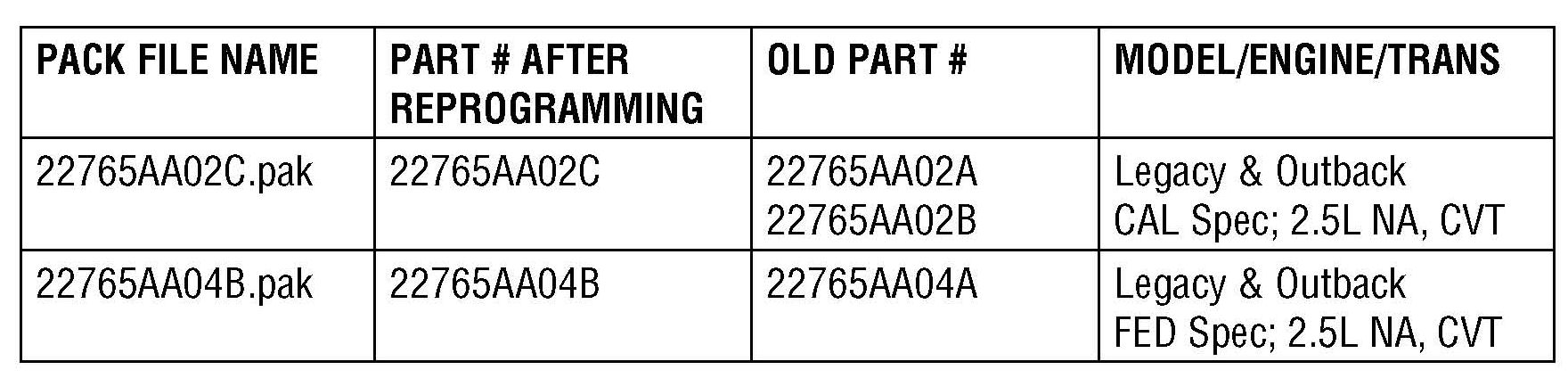 2010MY Legacy and Outback 2.5L NA, CVT