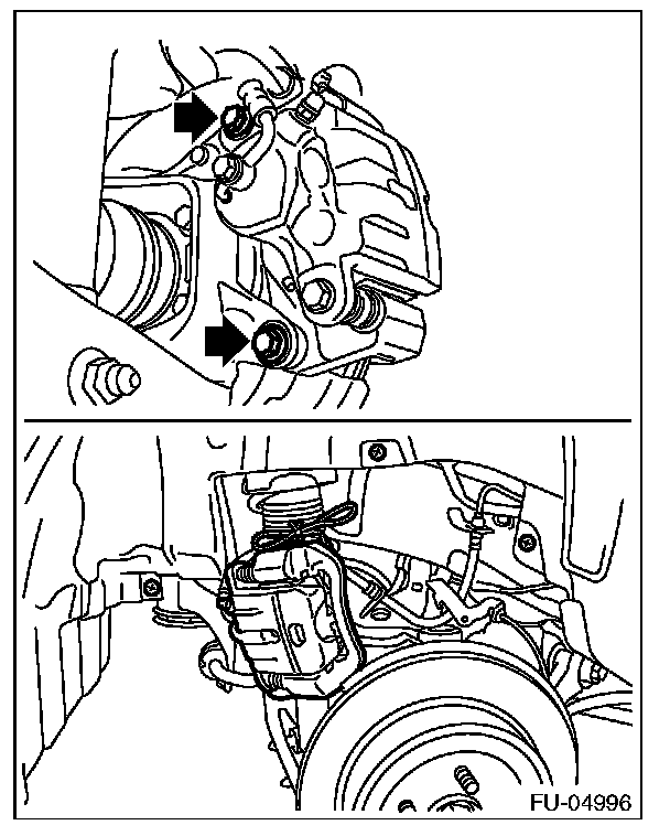 14. Remove the rear disc brake assembly and tie it to the body side of the vehicle.