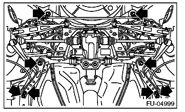 3. Remove the bolts which secure the rear suspension assembly to the body.