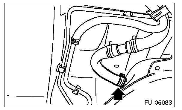 25. Disconnect the fuel filler hose (A) and circulate hose (B) from the fuel filler pipe assembly.