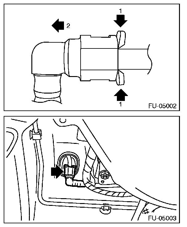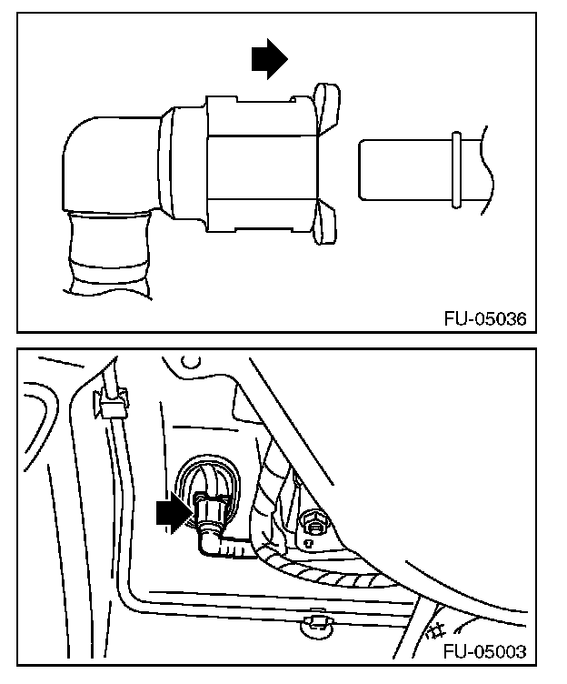 8. Disconnect the quick connector on the fuel delivery tube (A).