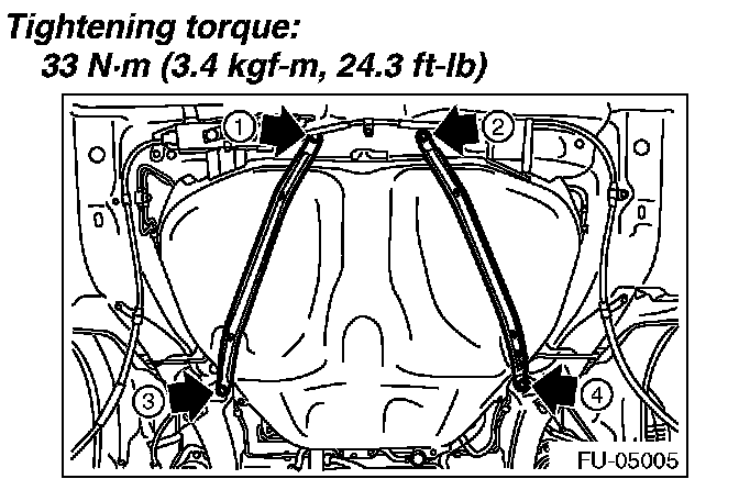 5. Tighten the bolts of the fuel tank band in the order shown in the figure.