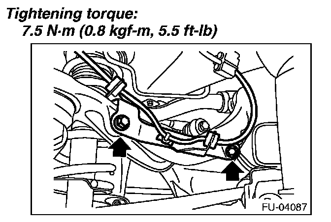 15. Install the rear ABS wheel speed sensor harness bracket to the upper arm.
