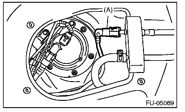 1. Disconnect the fuel cord connector (A), and remove the clip (B).