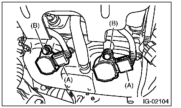 3. Remove the bolt (B), and remove the ignition coil.
