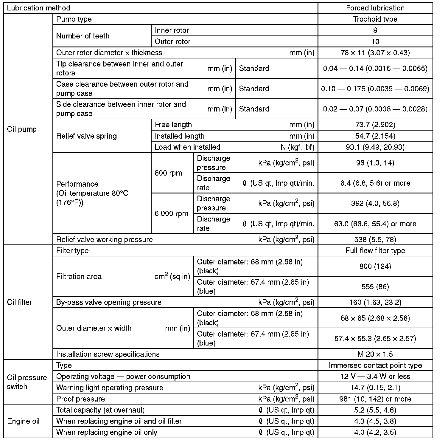 ^ If the vehicle is used in regions of high temperatures or in other severe environments, use oil with the viscosities shown below.