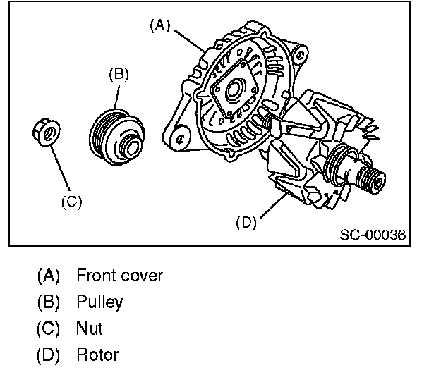 5. After re-assembling, manually turn the pulley to check that the rotor rotates smoothly.