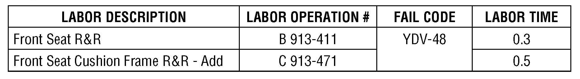 If you encounter a customer complaint that there is slight movement (some customers refer to it as a slight rocking motion) that could be felt in the lower portion of the driver's seat, there is a countermeasure seat frame now available to remedy the condition.