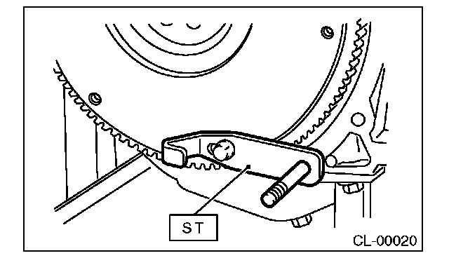 1) Temporarily tighten the flywheel, and attach the ST.