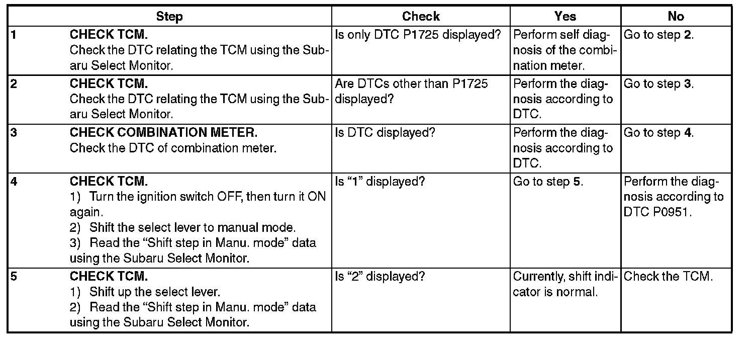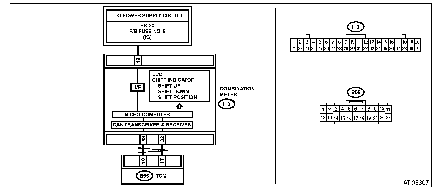 ^ Output signal circuit of shift indicator is open or shorted.