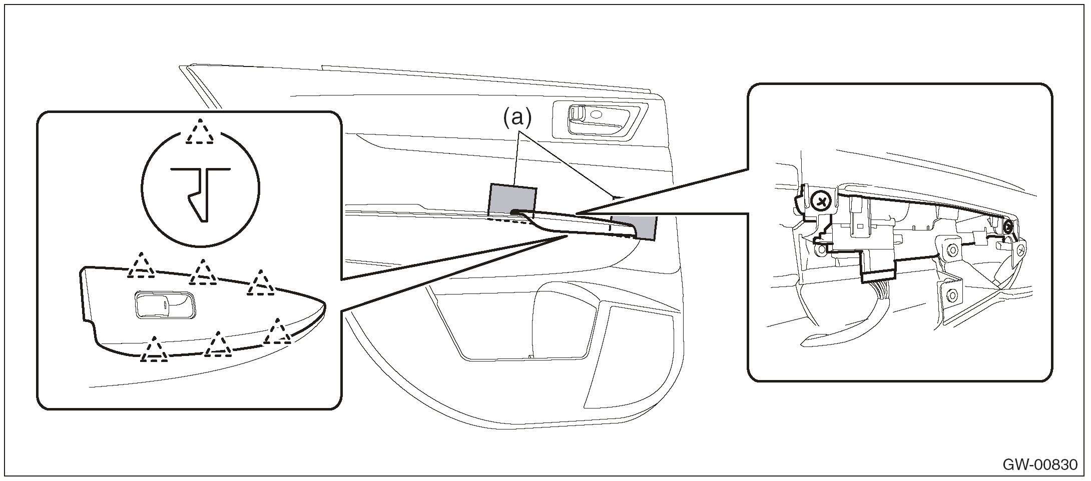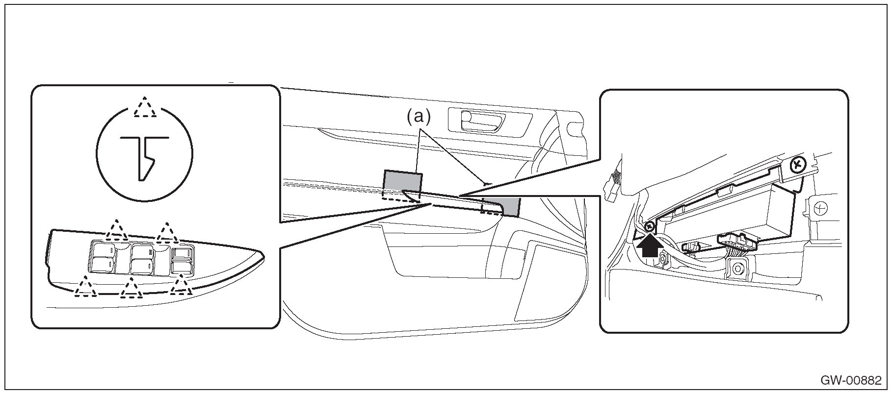 1. Insert a sheet of protective paper (a) between switch panel and door trim.