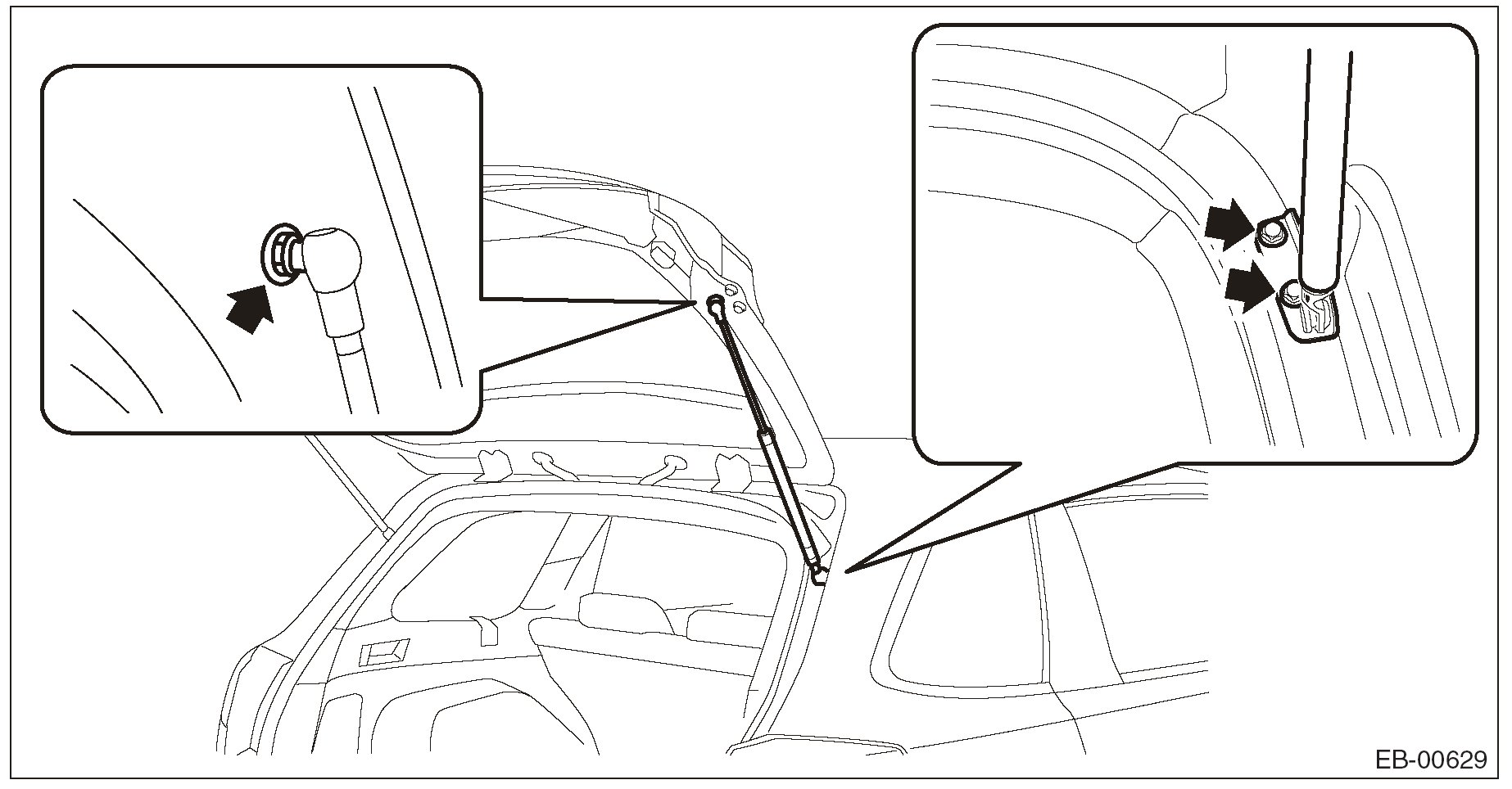 1. Before removing the rear gate damper stay, prevent the rear gate from closing using prop or the like.