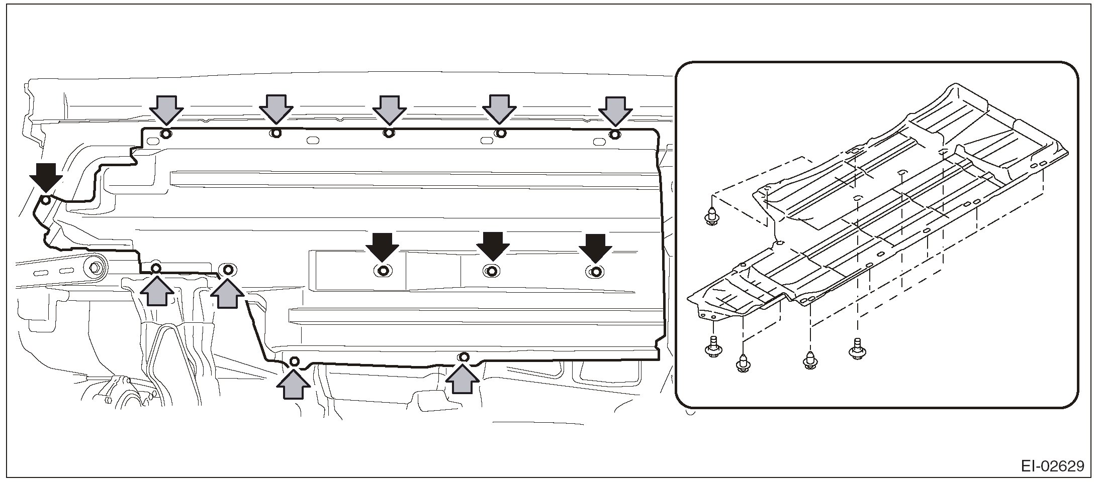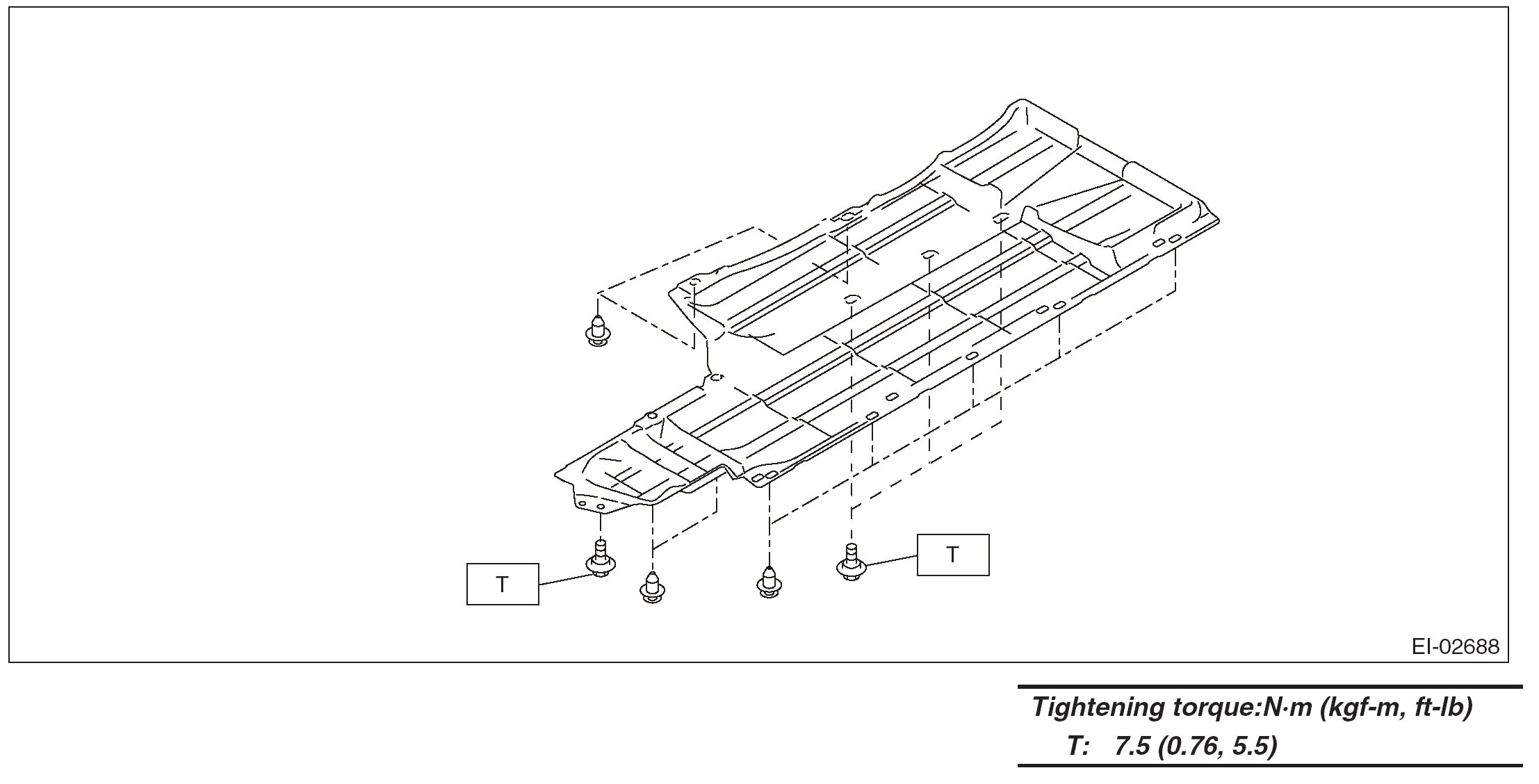 Tightening torque: Refer to "COMPONENT" of "General Description". [Ref. to FLOOR UNDER PROTECTOR, COMPONENT, General Description.]