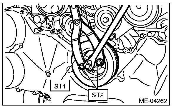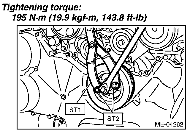 4) Use the ST to lock the crank pulley, and tighten the crank pulley bolt.