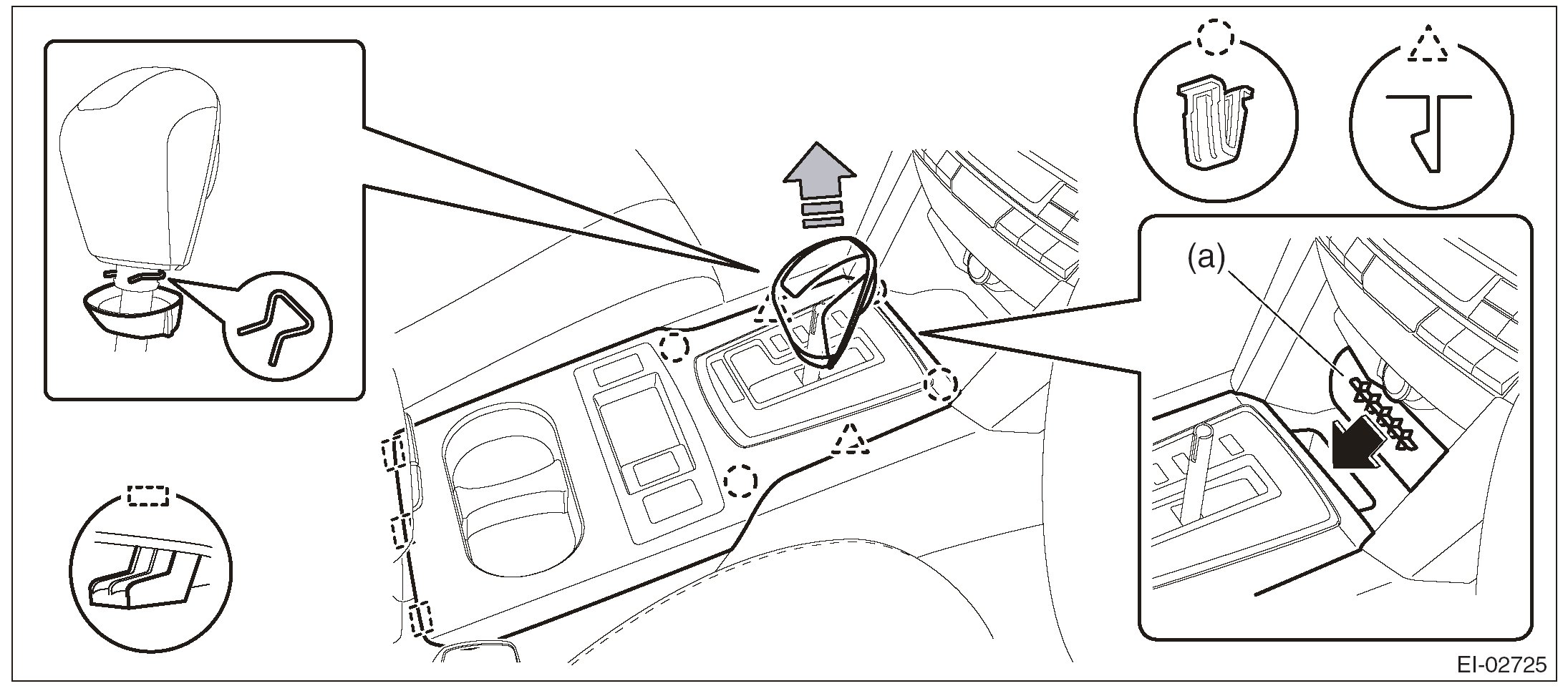 NOTE: Turn over the front center pocket mat (a) and pull up the console front cover from the slit.