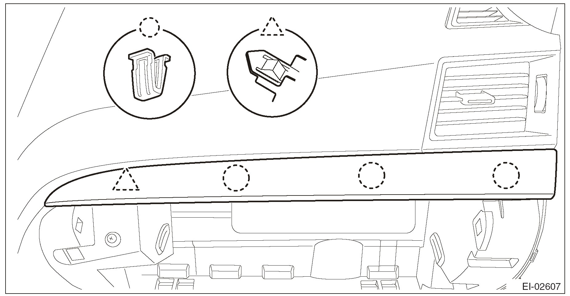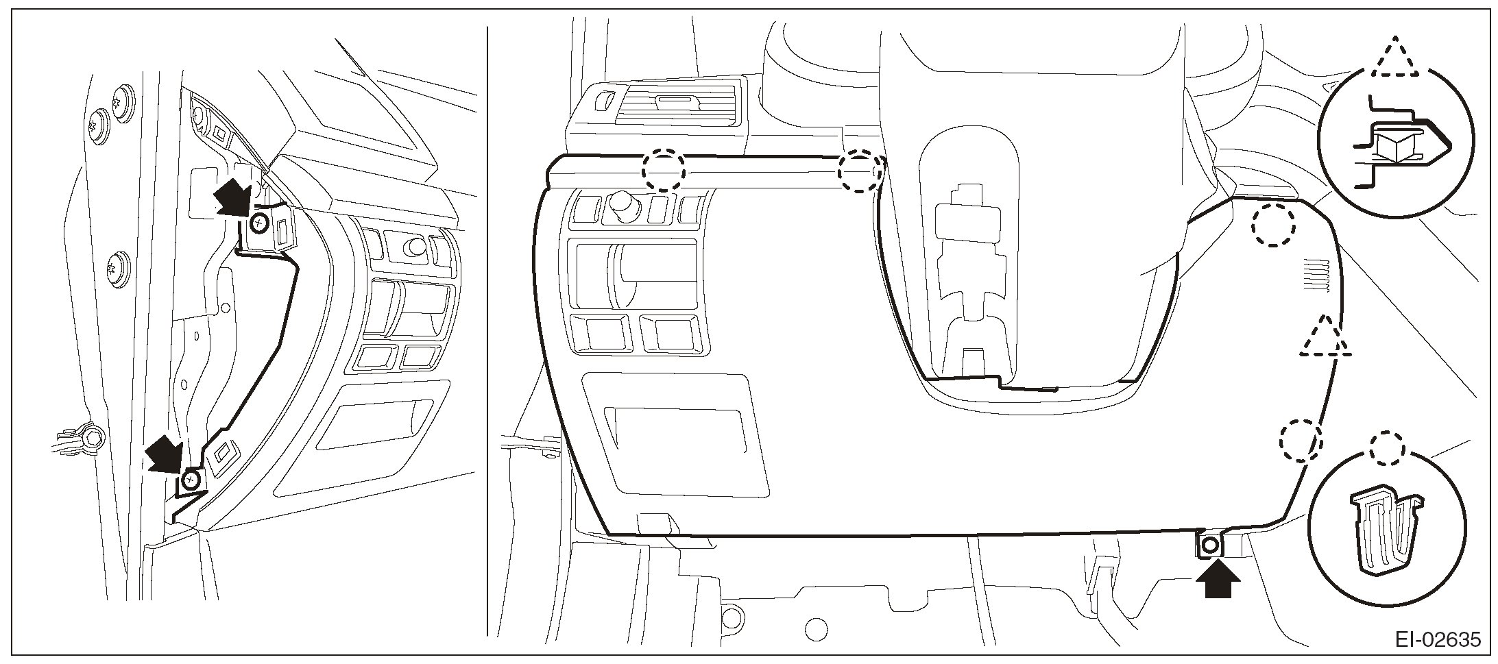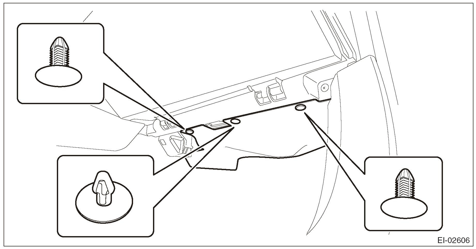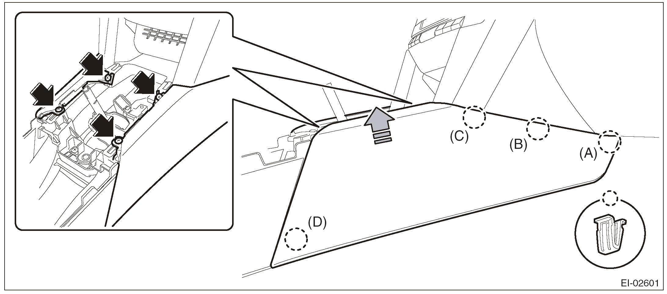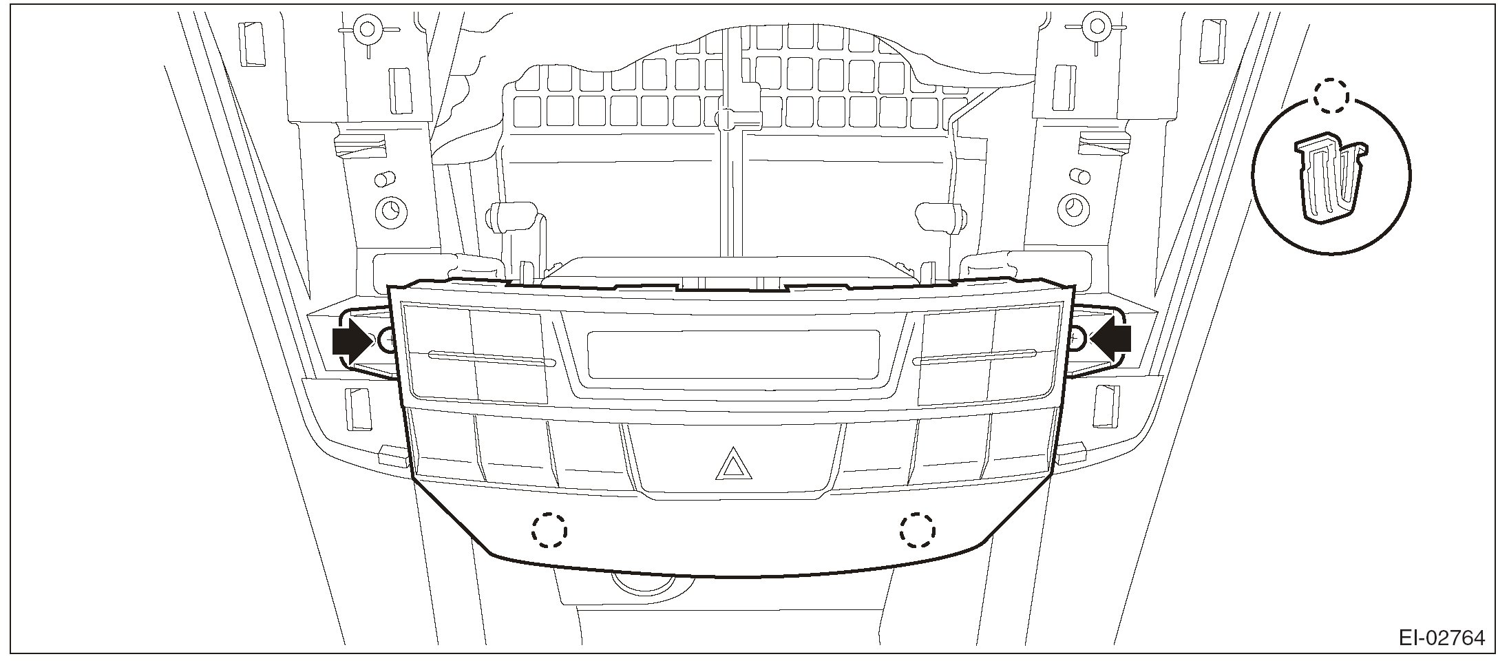 2. Insert the three matching pins on body into the instrument panel assembly.